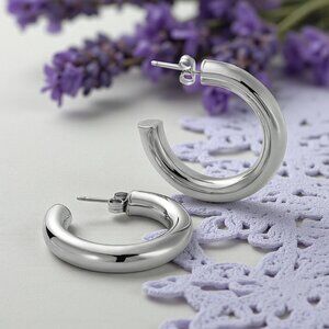 chunky hoop earrings | minimalist hoop earrings | stainless steel jewelry | white gold hoops | winter statement jewelry | fall fashion accessories | holiday party jewelry | modern earrings | hypoallergenic hoops | everyday chunky hoops | timeless jewelry gift | trendy winter hoops | chic fashion jewelry | bold modern earrings | poshmark trending style jewelry |