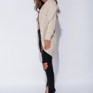 This longline cardigan featuring Chunky Cable Knit with shawl collar. This beautiful cardigan is great teamed with a pair of skinny jeans for the ultimate casual day look while staying toasty.