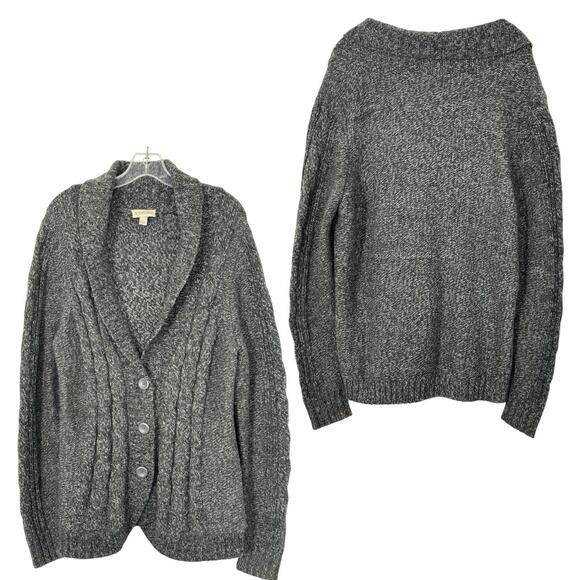 Chunky Cable Knit Fisherman Cardigan Marled Gray Women L Heritage Dark Academia