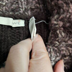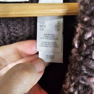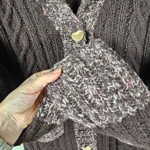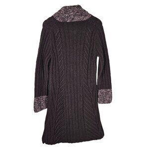 Chunky Cable Knit Long Wool Blend Sweater Coat S Brown Marled Trim Boho Hippie
