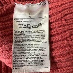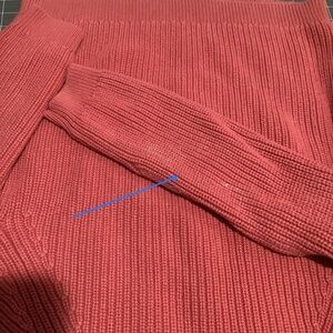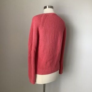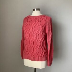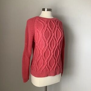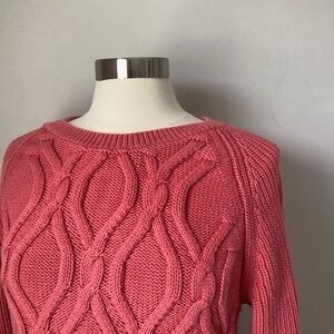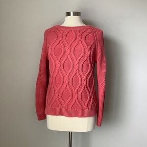 GAP Coral Coast Chunky Knit Sweater in deep coral salmon color. Chunky knit cotton. Good pre-owned condition, tiny bleach stains on back side of one sleeve - see photos.