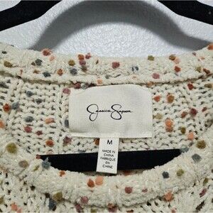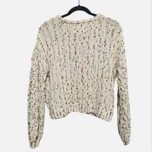 Chunky Cable Knit Sweater Neutral Colorful Pom Pom Cozy Chic Relaxed Fit Size M