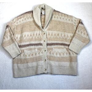 Chunky Cardigan Sweater Womens XL Old Navy Fair Isle Shawl Collar Beige Tan Knit