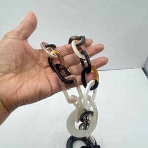 Chunky Chain Link Resin Marblelized Necklace With Adjustable Clasp Black Cream