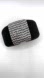 Chunky contemporary black and crystal statement wide cuff bracelet. I really don't know what this bracelet is made of. Its outer layer is very textured and is embellished with a center wide stripe of silver tone and crystals in clear and smoky color. All of the crystals are in place. It is about 1 1/2" wide and there is some flexibility in putting it on. My wrist is 6 3/4" and I am able to put it on with no problem. I don't think it would be comfortable for anyone with a larger wrist. It is also about 3/8" wide (depth). Very chunky