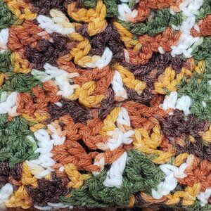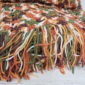 Chunky Crochet Blanket Fall Autumn Colors Tassled Brown Orange Green White