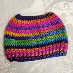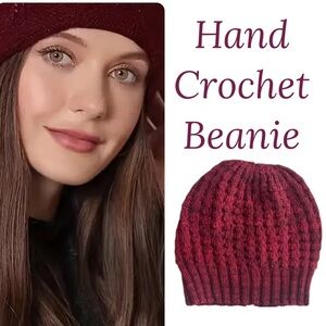 Chunky Crochet Boho Beanie Skull Cap Varigated Pink Hat Winter Fall Spring