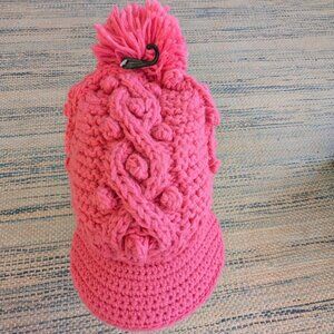 Chunky Crochet Slouchy Boho Beanie w/ Pom Coral Pink Hat - Winter Fall Spring