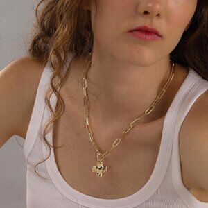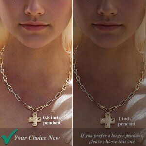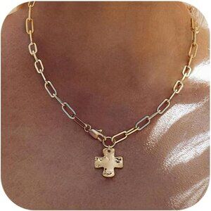 Features: Thick paper clip chain with a hammered cross pendant, perfect for layering or wearing solo. The textured cross symbolizes strength, faith, hope, and protection, adding a confident touch to any outfit. Made with durable 14k real gold plated brass, it's tarnish-free, lead-free, and hypoallergenic — great for sensitive skin.
