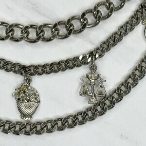 Chunky Draped Charm Chain Belt Silver Tone Y2K Festival One Size ✨