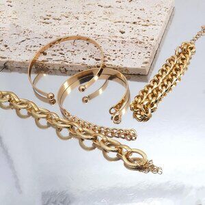 Unique Design:There are many different styles of gold chunky bracelets for you to choose from, each of which has four stylish and charming stacking bracelets, pearl bracelets, cable bracelets, rhinestone tennis bracelets and butterfly bracelets and other various styles of good-looking bracelets, you can choose how to go with these bracelets according to your mood and outfit. Wearing these glamorous bracelets will attract a lot of attention and make you the center of attention in the crowd.