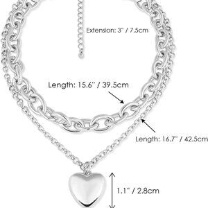Size: Comprising two gold-plated chains, the thicker chain measures 15.6" in length, while the thinner chain measures 16.7". Additionally, there's a 3" extended chain. The heart pendant is sized at 1.1" x 1.1". Effortlessly paired with any attire, this gold link layered necklace isn't just for everyday wear but also complements outfits for special occasions like parties and dates