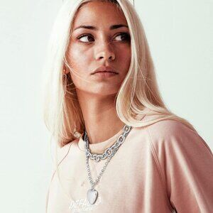 Chunky Gold Necklace Heart Pendant 14k Gold Plated Thick Chain Multilayer Neckla