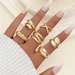 Complete your look with this set of 6 gold chunky rings for women. Each ring features a unique, trendy design, giving you plenty of styling options. Whether worn alone or stacked together, these rings make a bold statement and fulfill all your dressing needs.