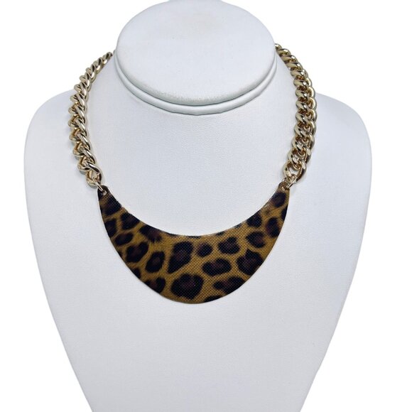 Elevate your style with this chunky gold-tone curb chain Choker necklace featuring a striking leopard bib. Perfect for adding a bold statement to any outfit, this necklace is a must-have for fashion-forward individuals seeking a touch of wild elegance.