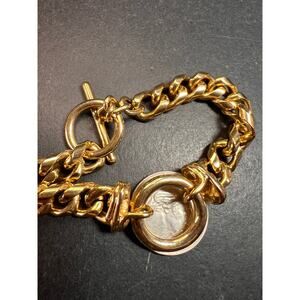 Chunky Gold Tone Curb Chain O-Ring Toggle Clasp Bracelet Costume Jewelry