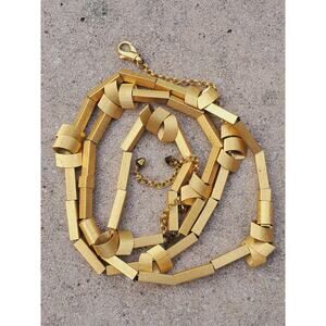 Chunky Gold Tone Geometric Statement Necklace – Layered Sculptural Boho Glam