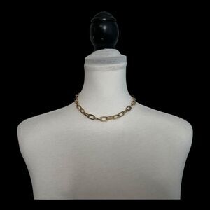 Chunky Gold Tone Oval Link Choker Collar Necklace 16" Long with 3" Extender