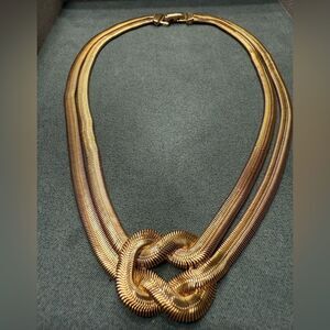 Chunky Gold Triple Strand Knot Necklace Vintage Statement Bold Elegant