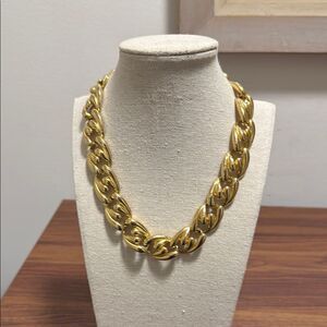 Chunky Gold-tone Open Link Statement Necklace with Fold Over Clasp.