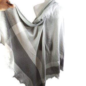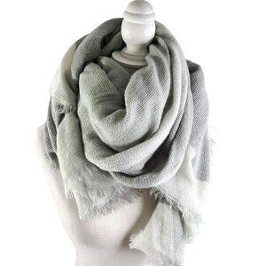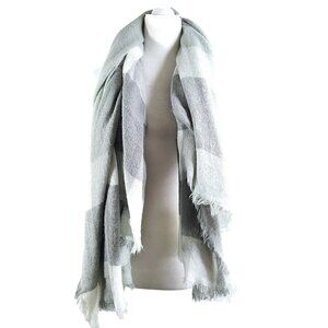 Chunky Gray White Plaid Fringe Colorblock Super Soft Shawl Throw Blanket Scarf