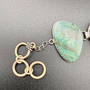 Stunning chunky turquoise bracelet features natural green gemstones, toggle clasp closure, and an adjustable chain. Perfect for enhancing any look with unique, earthy charm.