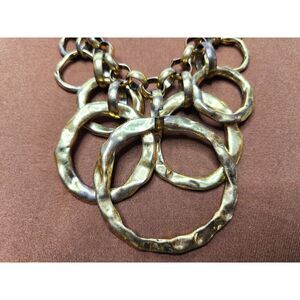 Chunky Hammered Gold Tone Statement Necklace 16” Chain with 2.5” Ring Pendant