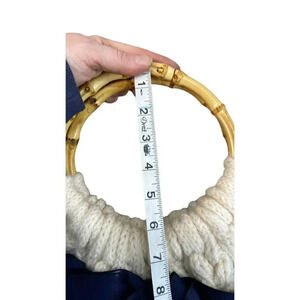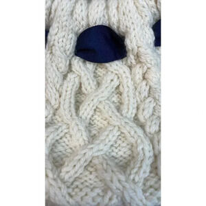 Chunky Hand Knit Cream with Navy Bow Coquette Girl Style Top Handle Handbag