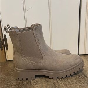 Elegant taupe ankle boots with a durable sole. Ideal for everyday style.