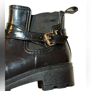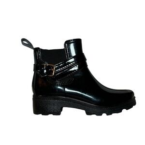 Black Patent Chunky Heeled Ankle Rain Bootie