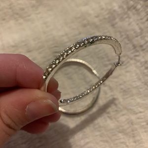 Super cute chunky hoop earrings. Diamond encrusted. Not authentic diamond. I believe these are stainless steel.