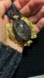 Chunky Hypersthene Amulet golden filigree wrapped set on a black silk cord
