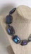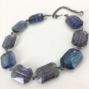 Chunky Iridescent Blue Glass Necklace Faceted Rectangular Beads Collar Lngth