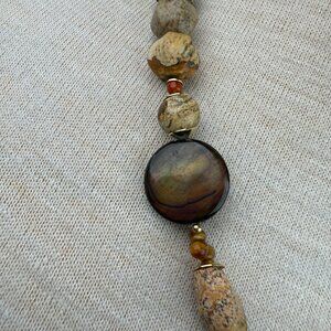 Chunky Jasper Stone MOP Beaded Necklace 22.75"