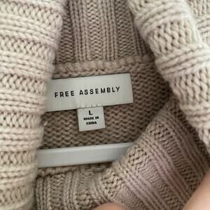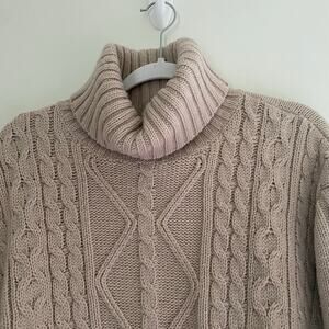 Chunky Knit Cable Sweater Turtleneck Light Tan Free Assembly Womens Size Large