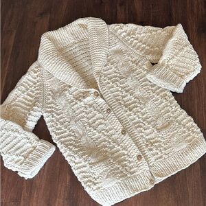 Ivory color, chunky knit sweater. Length is just past your bum - All buttons intact, no stains. EUC
