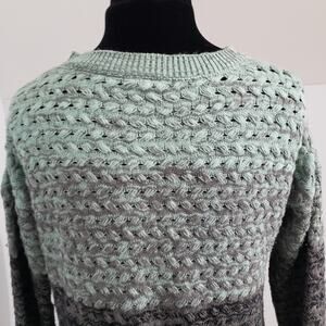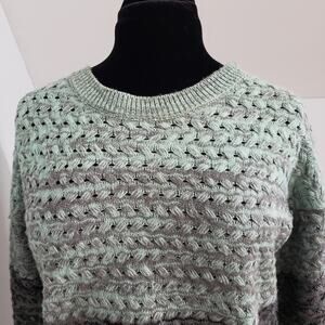 Chunky Knit Colorblock Ombre Crewneck Ribbed Long Sleeves Sweater Large