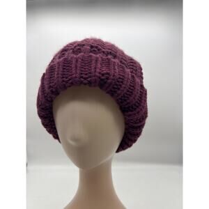 Chunky Knit Dark Purple Beanie Hat Acrylic Winter Boho Skiing Outdoors X-Small