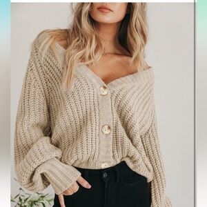 Chunky Knit Open Front Sweater Long Sleeve Button Loose Short Cardigan 8094