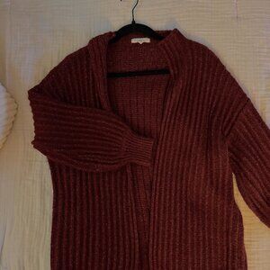 This sweater is so versatile in the winter, and perfect for a chill night in with the girls. Whether you want to sip some wine by the fireplace, or go Christmas shopping, this sweater provides just the right touch of a deep cherry red to any activity. It is oversized, very soft and falls right below the hips for the most effortless baggy look that is amplified by the balloon sleeves.