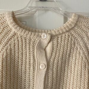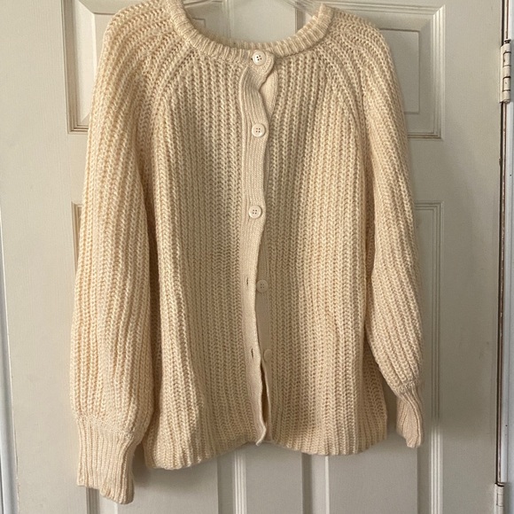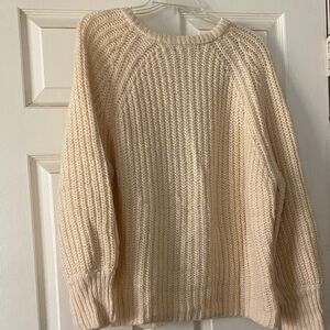 Stay warm and stylish with this cozy cream knit sweater. Perfect for layering and adding a touch of elegance to any outfit. Very oversized.
