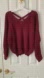 Chunky Knit Sweater Criss Cross Straps V Neck Cuffed Long Sleeves Wine Red