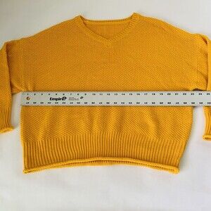 Chunky Knit Sweater Women S Mustard Yellow Oversized Balloon Sleeve VNeck Warm