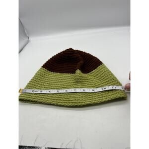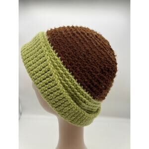 Chunky Knit Woven Wide Green Brown Stripe Beanie Knit Hat Outdoors Unisex XL
