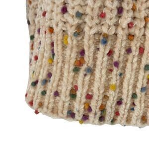 Chunky Knit Sweater Womens Size L Cream Colorful Dot Crop Chenille Knit Pullover