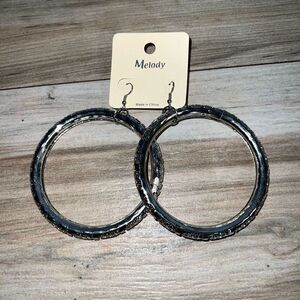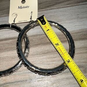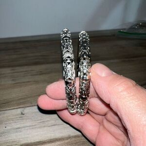Chunky Large Filagree Hoops Earrings Womens Silver Tone Sparkle Dangle Oversized