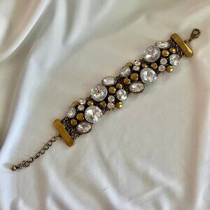Chunky Large Rhinstone Bronze Gold Tone Statement Fashion Costume Bracelet