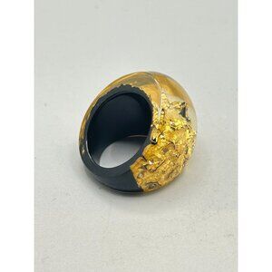 Chunky Lucite Plastic Ring Size 7.5 Big Bold Gold Flaked Domed Clear Black Color