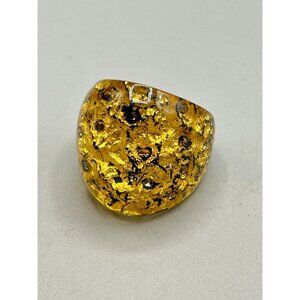 Tags: Chunky ring, Lucite ring, statement ring, Plastic Ring, Size 8 ring, Big Bold jewelry, Gold Flaked, Domed, Clear Black Color, costume jewelry, gold flakes, fashion rings