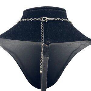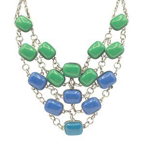 This bold layered necklace features vibrant green and blue beads set on a sturdy silver-tone chain, offering a striking yet elegant accessory.